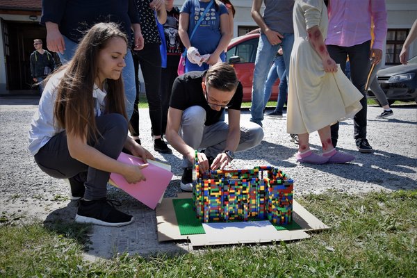 U knjižnici se susreo s vrijednim učenicima koji su od lego-kockica slagali baziliku sv. Franje u Asizu. Razgovarao je s Mihaelom, voditeljicom te radionice, a ona mu je o njezinu osnutku rekla sljedeće: „Razmišljali smo o materijalima koji su zabavni, a svi vole lego-kockice i bazilika sv. Franje je ujedno povezana sa školom. Imamo 3000 lego-kockica koje smo naručili preko interneta.“