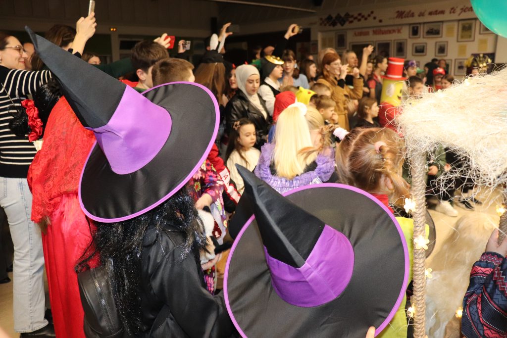 Vesela atmosfera, toliko originalnih maškara i osmijesi na licima najbolja su potvrda da su karaoke u školskoj blagavaonici pun pogodak.